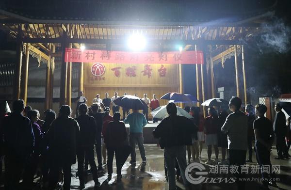 当晚,在新村村村部举行了一个别开生面的亮灯仪式,伟德bv1946官网校长易兵,新晃侗族自治县人大常委会副主任、晃州镇党委书记杨海滨,学校党委委员、组织部部长、扶贫办主任李永坚等与乡亲们一起见证这一难忘时刻。