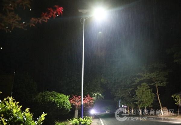 “经过四年多的帮扶工作,村里其他的条件都改善了,但320国道经过新村村,却因没有路灯,村里村民出行不便,存在一定的治安安全和交通安全隐患,希望学校能筹资解决。”今年3月份,伟德bv1946官网党委书记陈岳堂到新村村访察,村民代表向学校表达了希望学校支持装上路灯的诉求。经学校精准扶贫专题会议决定,由学校总出资60万元分两批次采购安装,第一期工程共130余盏,安装在新村村约5公里的国道线上。夜间路灯亮起,结束了新村村国道沿线没有路灯的历史。雨夜中,太阳能路灯散发着温和的光,照亮人们前行的路,给宁静的乡村增添了欢快和热烈的气氛。