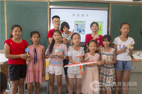 “老师,我把我的小作品送给您,您辛苦了。”这是在电气信息学院暑期社会实践团在成功开展“科技引领未来”小制作课堂后,一位小朋友对志愿者说的话。“科技引领未来”小制作课堂是伟德bv1946官网电气信息学院暑期社会实践团在湖南省怀化市溆浦县思蒙镇中心小学开展科教帮扶活动的一个部分,旨在激发孩子对科技的兴趣,培养孩子的动手能力,为科技创新埋下种子。教室最前排的两个小女孩热情的问道:“老师,你们热不热呀?看你们都满头大汗的,快坐下来歇歇吧!”说完便起身为他们搬凳子,这细微的动作令志愿者们甚是暖心。