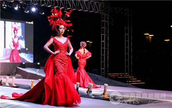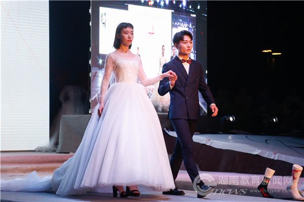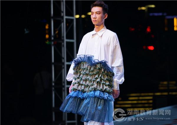 作品展共分为成衣服装、创意服装、创意袜品设计、礼服与轻奢商务男装展示四大篇章,服装风格丰富,类型多样,学生巧妙运用民族或时尚元素,诠释传统与创新、时尚与文化,展现了服装专业人才培养能力与成果。与湖南莎丽袜业股份有限公司进行产教融合,结合第二届“袜品配服装”袜品设计大赛作品进行动态和静态展示,学生结合流行趋势和市场需求将袜品与服装进行整体设计,在款式色彩、立体装饰、图案提花、肌理再造等方面对袜品进行创意设计,成为此次活动的一大亮点,实现了设计与生产、创新与市场的有效结合,为学院师生提供实践平台的同时,也为企业提供创新概念和设计方案,实现小袜子、大纺织、大品牌、大传承,促进袜品“腿部时装”文化的发展。与湖南东方有限公司(旗下的圣得西品牌)、苏州衫飞丝舞婚纱礼服有限公司进行校企合作,通过产教融合的新模式指导学生设计制作出工艺精良、风格时尚的男西装与礼服系列,帅气的轻商务男装与精致优雅的礼服完美搭配,带来一场极具艺术感的视觉盛宴,赢得现场观众嘉宾们的高度赞许。活动全面丰富地展现了该校纺织服装学院服装设计专业的教育教学特色。