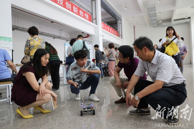 从机器人专用伺服电机的设计研究到基于Arduino的智能家居控制系统设计,从新型智能汽车门锁控制系统设计到可穿戴式鼠标的设计与实现,从基于单片机的简易无人机系统设计到基于虚拟仪器的充电桩性能测试系统设计……参加毕业设计作品展的毕业生们围绕生活、生产展开自己的设计构思和作品制作。“这对于我们个人而言是一次很好的考验和挑战。”电子信息专业毕业生张巧龙和张如意带来的作品都是自己设计与制作的两轮平衡车。张巧龙设计出的两轮平衡车更是加入蓝牙及超声波模块,以手机作为遥控器,对平衡车进行遥控行走,同时通过采用超声波模块,实现平衡车对人进行自动跟随,其巧妙的设计和精细的制作吸引了众多师生的关注。