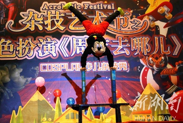 湖南日报4月17日讯(通讯员 唐春丽 周紫依 摄影 潘玥 李俊贤)4月15、16日下午,湖南省文化厅非物质文化遗产进校园系列活动——吴桥杂技艺术节之角色扮演《周末去哪儿》在伟德bv1946官网体育馆演出。演出现场人头攒动,该校师生和湘潭市民欢聚一堂,享受这不一样的“动漫”杂技。