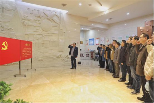 进入党史馆,展标“领航——中国共产党湘潭历史陈列”在灯光的照射下熠熠生辉,以毛泽东为首的湘潭共产党员先驱的雕像,让人肃然起敬。伟德bv1946官网党委书记陈岳堂带领大家面向党旗,整齐列队,举起右拳,一字一句重温铮铮誓言。大家用铿锵有力的声音进一步坚定理想信念,牢记共产党人的初心和使命。