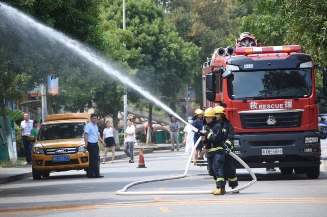 演练模拟该校食堂燃气管道被撞坏,导致燃气大量泄漏并引发大火。学校发现情况后紧急拨打湘潭新奥燃气有限公司、湘潭市消防救援支队、湘潭市妇幼保健医院联系电话,要求相关部门立即赶到现场进行救援,并由保卫处、后勤基建处、校医组成初期应急队伍奔赴现场,拉起警戒线,组织人员疏散,并关闭现场电源。