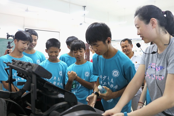 在伟德bv1946官网创新创业实践基地,中学生们不仅看到了各式各样的展品,还手握遥控器和操纵杆,在探索和研究中亲密接触“高科技”。同学们在研究生的悉心指导下,戴上VR眼镜沉浸式学习拆卸汽车零部件,汽车在“方寸之间”变得真实可感;按压发电装置,通过人体动能点亮一排排白炽灯;体验3D打印,原本简单的材料“摇身一变”成为形状各异的艺术品。据悉,机器人、无人机、3D打印等科技成果展示和操作体验,均由研究生们根据学校的优势学科和特色专业并结合自己的科研方向,为孩子们精心“定制”。