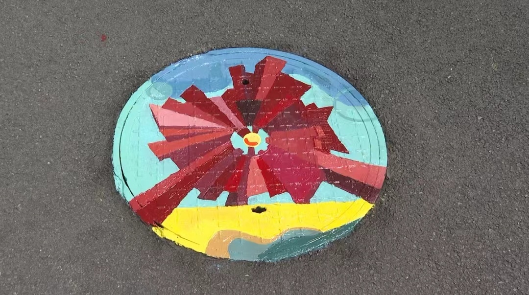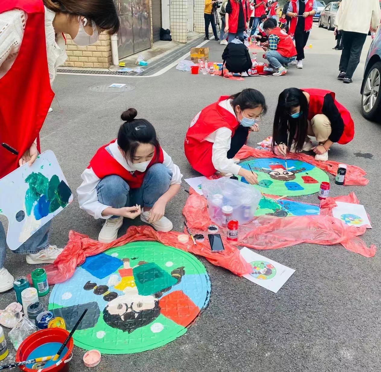 绘画过程中,50名志愿者拿着蘸有颜料的刷子,在井盖上仔细勾画,对其进行填充上色,并喷上清漆使其色彩光亮,同时起到保护色彩的作用。经过近7个小时的精心创作,“湖工青团”“抗疫卫士”“宝塔”“最美窑湾”“廉洁文化”等一个个主题鲜明、颇具特色的精美图案,纷纷“落户”于小小的井盖上,扮靓了社区的空地,装点着城市的“文明”。