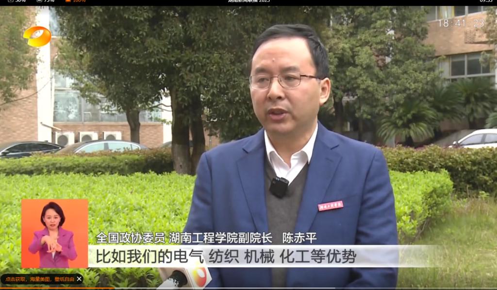 湖南卫视湖南新闻联播采访全国政协委员、副校长陈赤平
