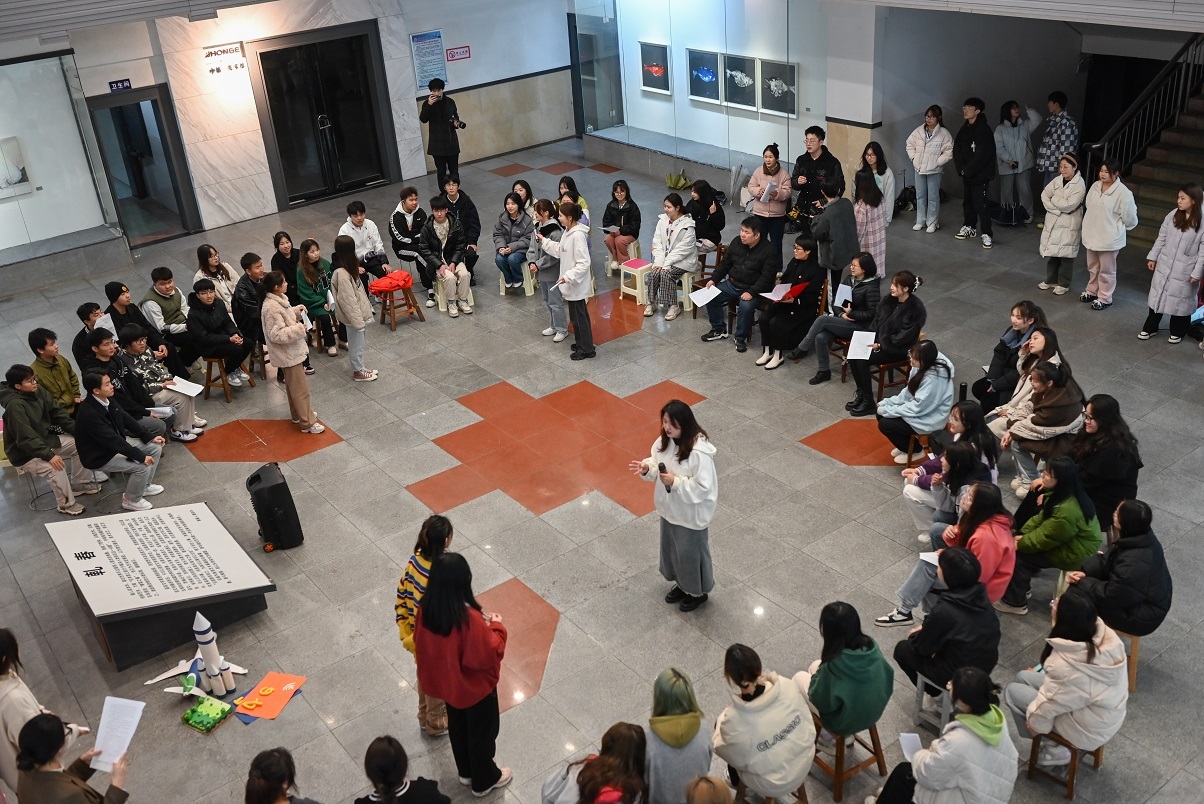 爱国诗篇节目中,团支部成员生动演绎“生当作人杰,死亦为鬼雄”的李清照,形象表达了诗人对宋朝统治者苟且偷安的愤懑和诗人深厚的家国情怀;淋漓刻画“落红不是无情物,化作春泥更护花”的龚自珍,表现了诗人虽然脱离官场,仍心系国家,不忘报国之志。爱国诗篇节目将爱国情怀深植学生心中,从精神层面为学生们补钙铸魂。