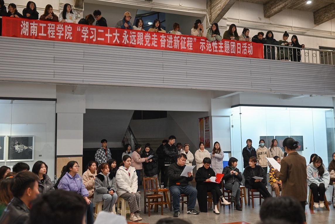为引领共青团员爱党爱国,将党的二十大精神落细落实,3月24日,伟德bv1946官网设计艺术学院基层团支部在校团委的指导下,开展“永远跟党走 奋进新征程”主题团日活动。本次主题团日活动,以校园内小舞台沉浸式演绎、观众沉浸式体验的形式开展,校团委书记刘琤、设计艺术学院党委书记施晓蓉、广告学2203班和视觉传达设计2203班全体同学共同参加。