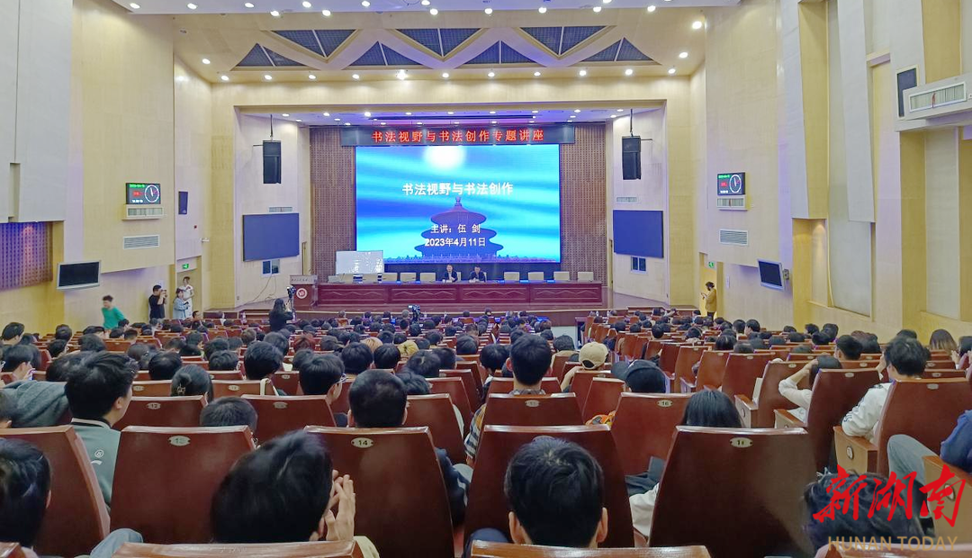 为更好传承弘扬中华民族优秀传统文化,提升师生审美水平,4月11日下午,中国书法家协会隶书委员会委员、湖南省书法家协会副主席、湘潭市书法家协会主席、齐白石纪念馆(美术馆)馆长伍剑应邀来伟德bv1946官网作题为《书法视野与书法创作》的专题讲座。