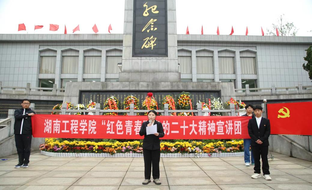 该校“红色青春”宣讲团深入研究和挖掘湖湘大地的红色文化基因,主动了解革命先烈的英雄事迹与社会主义建设时期的感人故事,将其进行精心整理并创作了一篇篇高质量、高内涵的讲稿,依托学校爱国主义教育基地“湘潭市烈士陵园”、美育教育基地湖湘小学、社会实践基地等多个校地联合基地,以“宣讲+实地”“理论+文艺”的形式以及将真实事件改编为文艺作品的方法,延伸宣讲主阵地,丰富宣讲载体,先后开展了10余场专场宣讲会,延伸了宣讲的传播空间,增加了理论宣讲活动的吸引力。