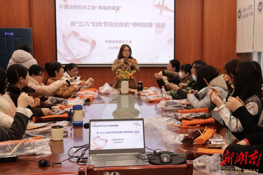 湖南日报·新湖南客户端3月7日讯(通讯员 卿鹏 张琼燕 覃群雅)为加强人文关怀,凝聚学院向心力,3月5日,伟德bv1946官网外国语学院分工会开展“幸福微课堂”——扭出你的“柿柿如意”DIY手工制作课。