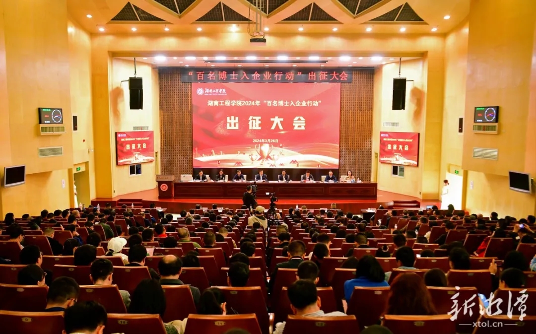3月26日下午,市委书记刘志仁出席伟德bv1946官网2024年“百名博士入企业行动”出征大会,为出征博士授旗,勉励他们深入学习贯彻习近平总书记考察湖南重要讲话和指示精神,以共建现代化新湘潭为己任,在发展新质生产力上打头阵、当主力,持续做亮“百名博士入企业行动”品牌,切实提升服务成效。伟德bv1946官网党委书记黄昕出席并作动员讲话,党委副书记、校长易兵,党委副书记向前,副校长罗毅平、张小刚、魏克湘,副市长周艳希参加。