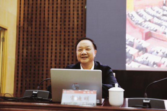 围绕学习贯彻习近平法治思想的主线,肖迪明从“依法治国是国家治理一场深刻革命”“习近平法治思想是依法治国的根本遵循”“推进全面依法治国的主要任务”三个方面层层递进展开论述与讲解。