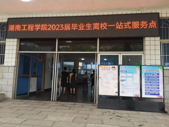 学校在滨江公寓10栋、南校区实验室一楼分别设立2023届毕业生离校服务点。服务点现场由学生工作部牵头,组织部、教务处、计划财务处、资产管理处、后勤基建处、团委、图书馆多部门联合集中办公,为毕业生提供“一站式服务”。就开具学生身份证明、学生证注销、党组织关系转接、团组织关系转接、图书仪器归还、图书资料归还、图书欠款清缴、学杂费清缴、水电费清缴等多项毕业相关事宜进行现场办理和现场咨询服务。